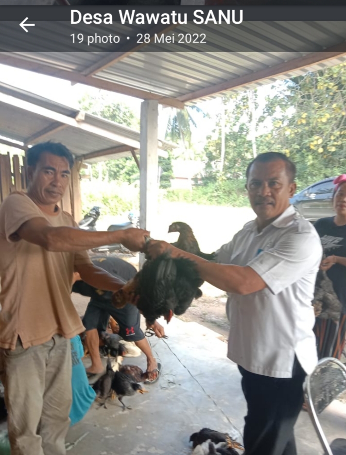 Pembagian ayam kampung/Kepala keluarga sebanyak 5 ekor/kk telah dibagikan 420 ekor, dan akan menyusul 600 ekor lagi, untuk mengantisipasi bibit yang unggul pemdes WAWATU telah siapkan dana anggaran tersebut”.tinggal tunggu ayam nya”.jelas SANU(kades wawatu).