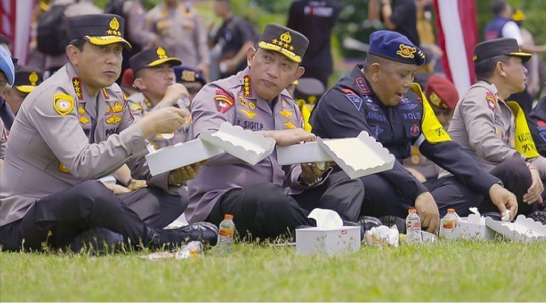 Kapolri Makan Nasi Kotak Bareng Anggota di Apel KTT